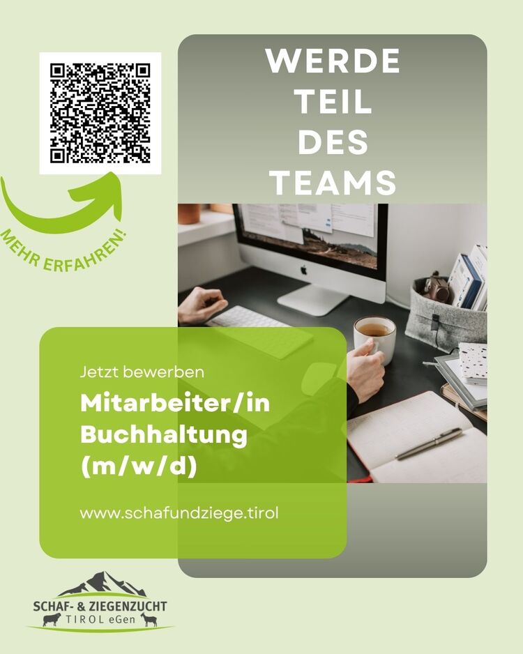 Die Schaf- und Ziegenzucht Tirol eGen sucht zum sofortigen Eintritt eine/n neue/n Buchhalter/in in Teilzeit (25 Wochenstunden) mit Dienstort in…